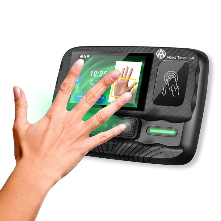 - Multiple biometric scanners built-in: choose palm scan (using new near-infrared wave technology) or face scan (advanced algorithm), or RFID badge option if no biometric verification required