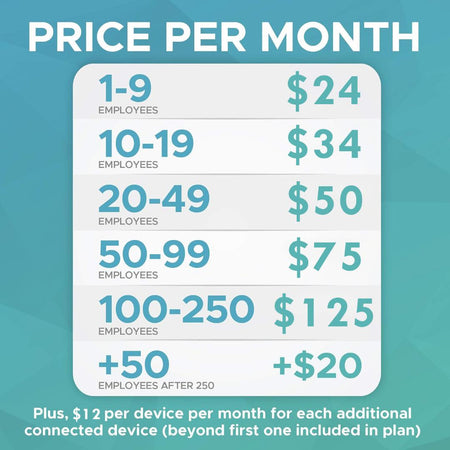 100-250 Employees $125.00 (+$20 for each additional 50) Plus, $12/month for Each Additional Device (beyond first one) in use per account